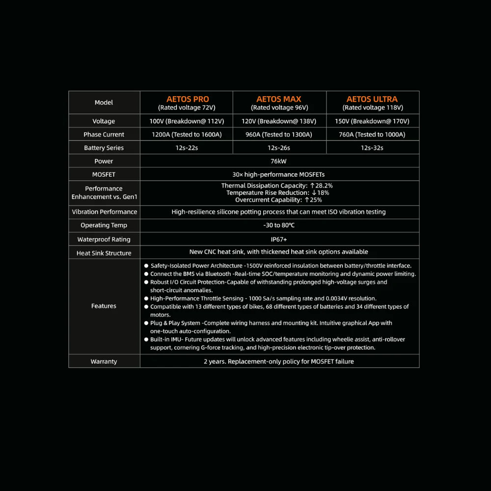 Built for riders pushing the limits of their e-moto builds, the AETOS MAX controller delivers extreme power output, ultra-smooth throttle response, and full tuning control through the mobile app.